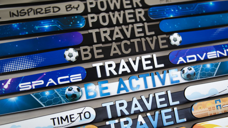 Konvexe und hervorstehende Beschriftungen werden mit hochwertiger Thermotransferfolie in verschiedenen Farben abgedeckt, wodurch Kennzeichenhalter neben ästhetisches Design eine hohe Haltbarkeit Ihrer Werbung garantiert.