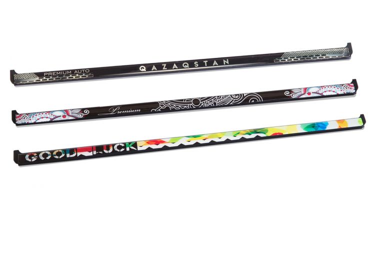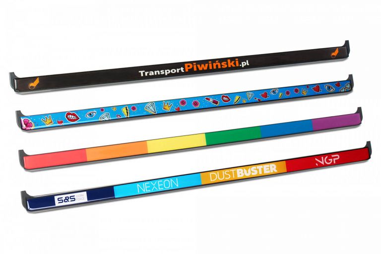 Doming ist ein digitaler Farbdruck auf einer selbstklebenden Digitaldruckfolie, überzogen mit hochwertigem, transparenten Polyesterharz. So entsteht ein Werbeaufdruck mit tiefen und klaren Farben, der dank Einsatz von Flüssigharz gegen UV-Strahlen geschützt ist sowie eine hohe chemische Beständigkeit und mechanische Festigkeit aufweist. Die mit Doming-Technologie hergestellten Halter zeichnen sich durch hohe Flexibilität und einen 3D-Effekt aus (2 mm Stärke). Die Leiste besitzt einen Kantenschutz aus Kunststoff, der die Oberfläche zusätzlich vor Beschädigungen schützt.