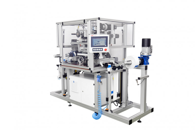 El aplicador está equipado con un panel de operador táctil en color, integrado con el PLC, que permite el ajuste de todos los parámetros de operación del aplicador junto con la visualización de las etapas operativas. El dispositivo permite la aplicación de material holográfico basado en cromo y aluminio.