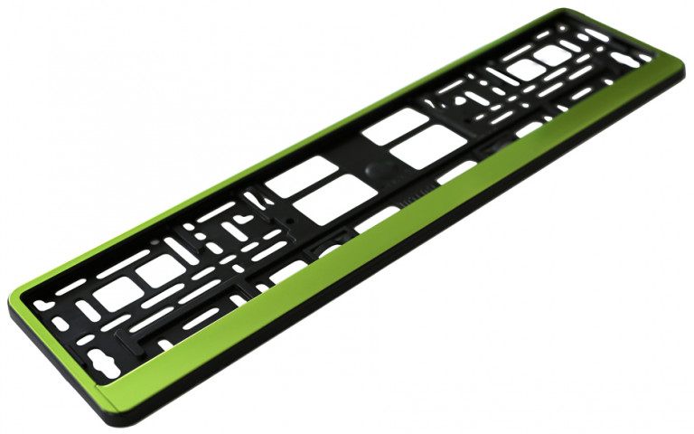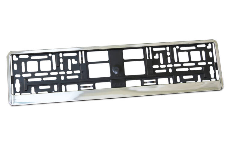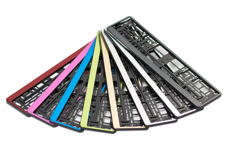 La superficie cromada se logra mediante la aplicación directa de la lámina de termotransferencia en el listón y el borde de portaplaca. Después de la instalación de la portaplaca se obtiene el efecto de recubrimiento sobre toda la superficie. Cada portaplaca es empaquetada individualmente en una bolsa de plástico, con un colgante que contiene la instrucción de instalación y código de barras. Ofrecemos una amplia gama de colores.