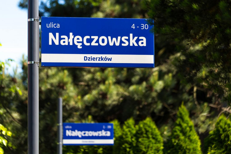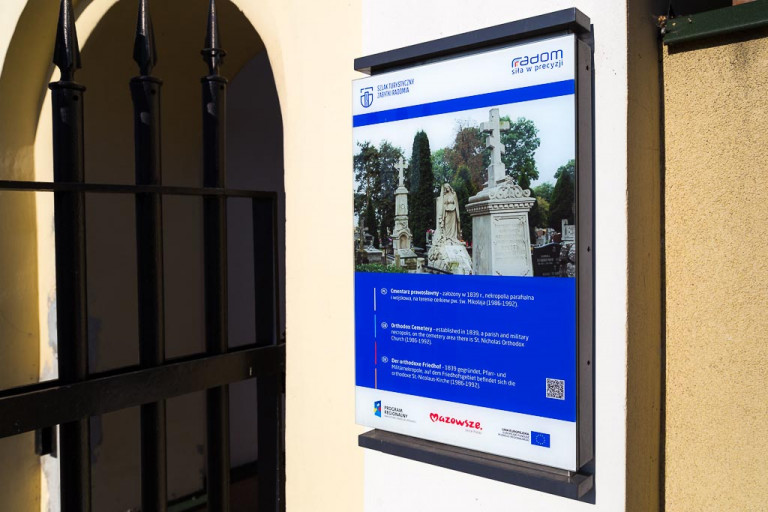 La señalización consiste en tableros de información en monumentos y placas con nombres de calles. Todos los señales se mantie en un esquema de color uniforme. Esto hace que sea más fácil identificar objetos.