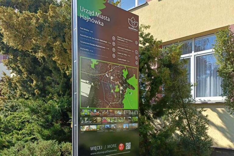 W trzech jej kluczowych punktach Hajnówki pojawiły się dwustronne tablice informacyjne. Tablice zawierają udogodnienia w postaci Tagów NFC i QR kodów, które umożliwiają odczytanie treści tablicy za pośrednictwem telefonu. Następuje wówczas odesłanie do stworzonej strony internetowej, gdzie znajdziemy opisy obiektów wraz z ich zdjęciami, dane kontaktowe, a także audiodeskrypcję.