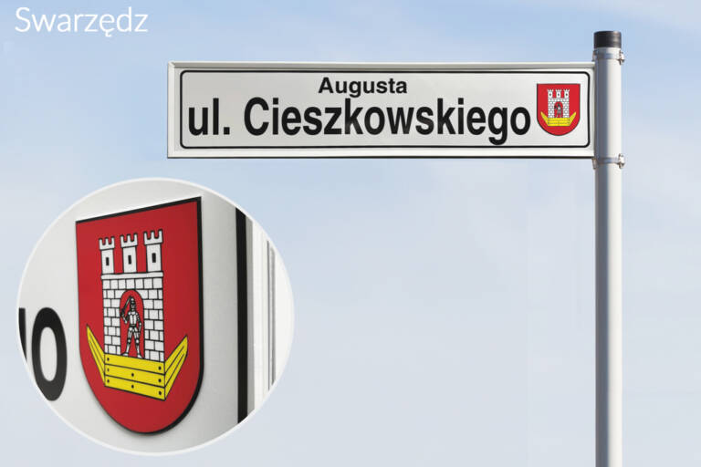Dzięki naszemu szerokiemu wachlarzowi posiadanych maszyn do obróbki aluminium, wprowadziliśmy innowacyjne rozwiązanie w jednym z elementów Systemu Informacji Miejskiej (SIM) – tłoczenie herbu miasta lub gminy na tablicach ulicowych. Zastosowana technologia tłoczenia pozwala na uzyskanie trwałych i eleganckich symboli lokalnej tożsamości, takich jak herby i logotypy, będącymi nie tylko estetycznym detalem, ale także sposobem na podkreślenie unikalnego charakteru przestrzeni publicznej.