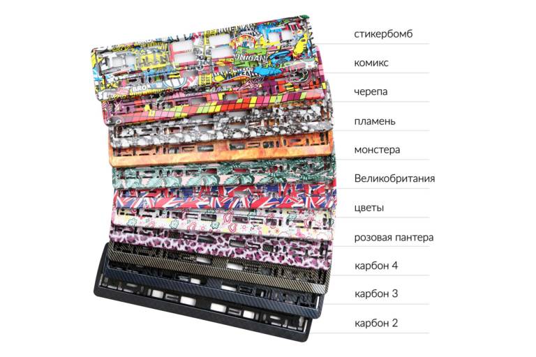 Иммерсионная печать – это технология, в которой для переноса изображения используется специальная пленка с водорастворимым слоем. Печать наносится полностью на всю поверхность рамки, что придает ей неповторимый визуальный эффект. Эти рамки мы советуем клиентам, которые хотят изменить свою машину с помощью визуального тюнинга. Каждая рамка отдельно упакована в мешочек с этикеткой, инструкцией крепления и штрих-кодом.